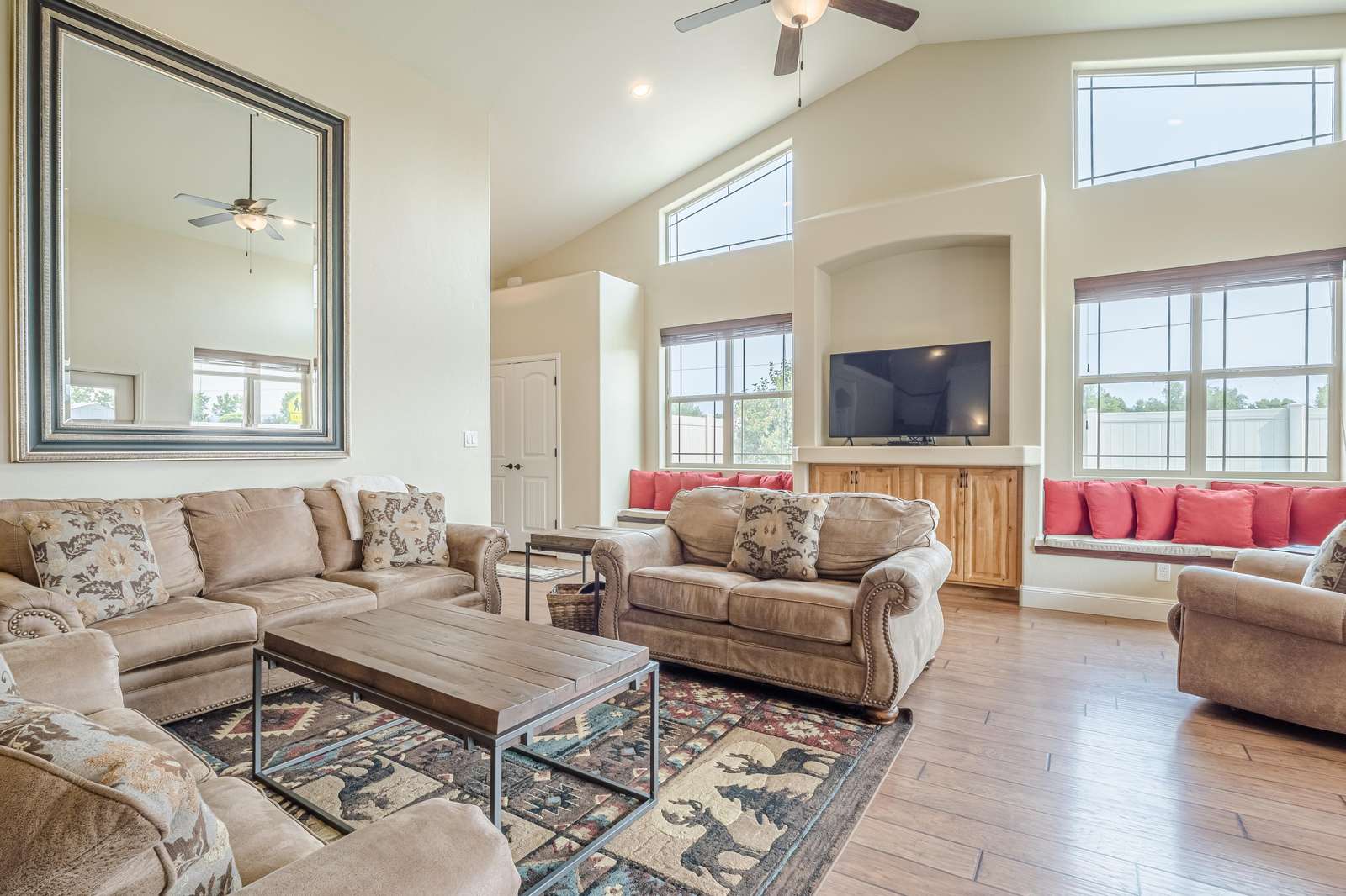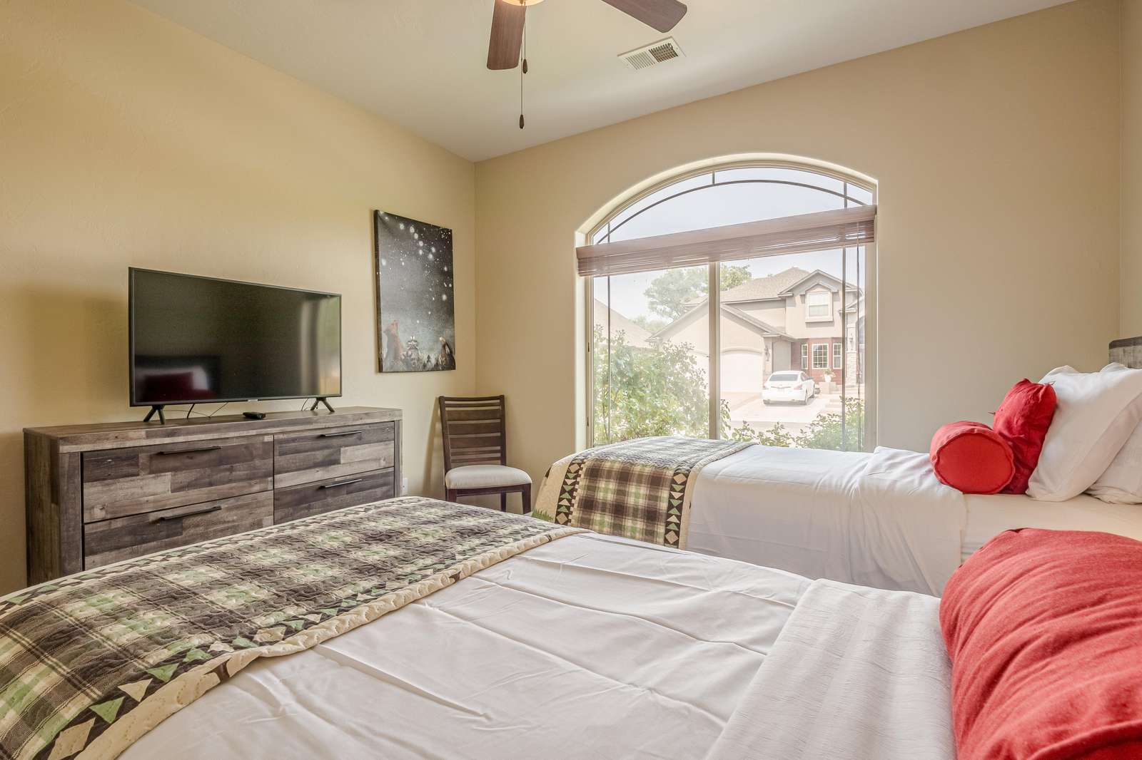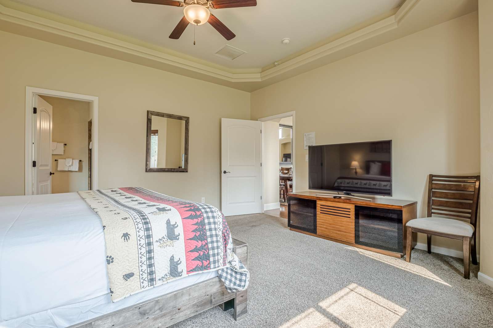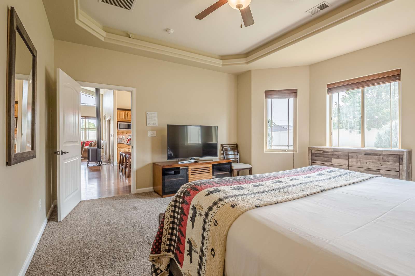 + Entertainment Galore: Dive into your favorite shows and movies on the large flat-screen smart TV equipped with Wi-Fi for seamless streaming.