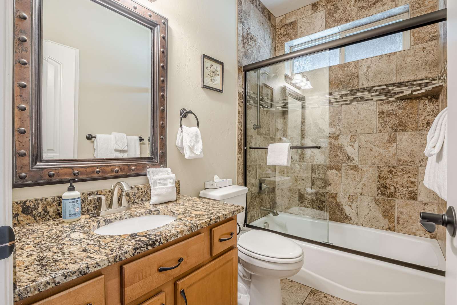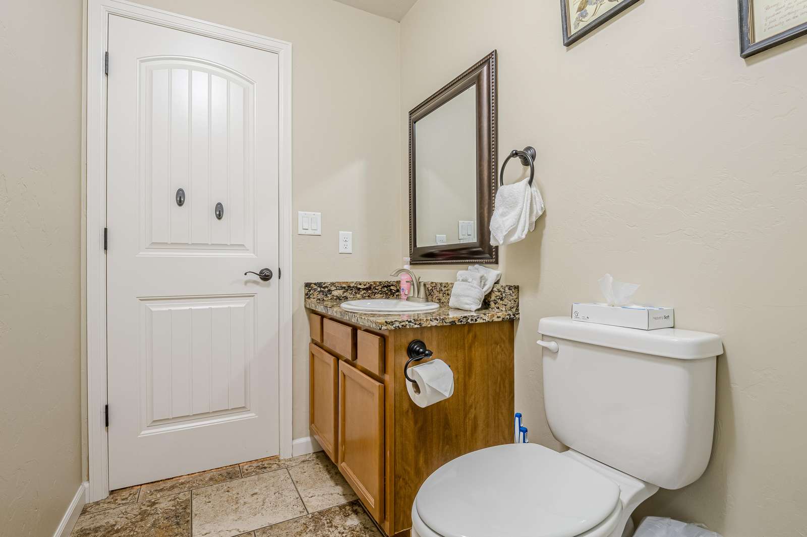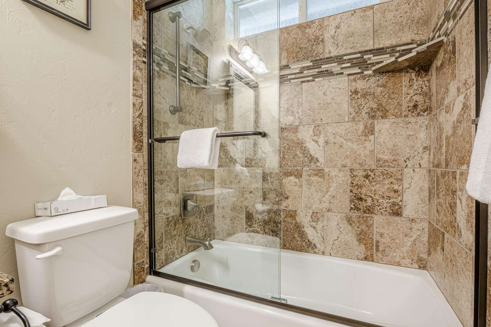+ Modern Kitchen: Prepare delicious meals with ease using our updated kitchen appliances, including a convenient full-size coffee maker/Keurig combo.