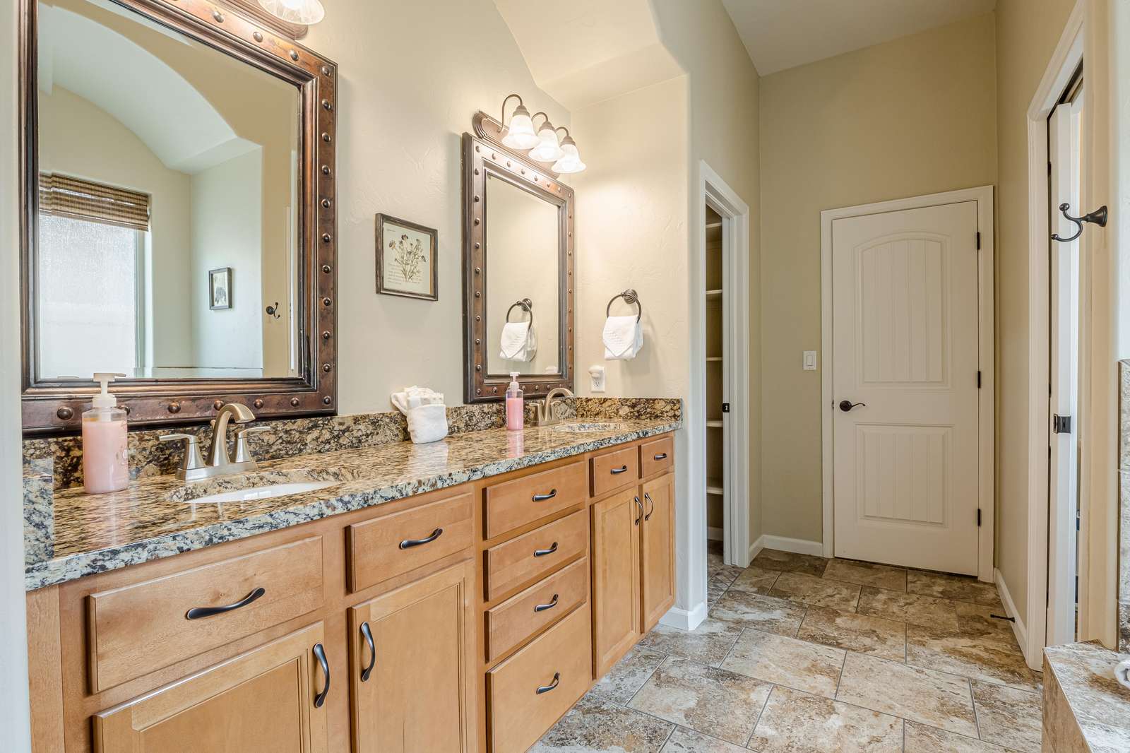 - Full ensuite bathroom! Includes a toilet, dual sinks, a step-in shower, and a large tub.
