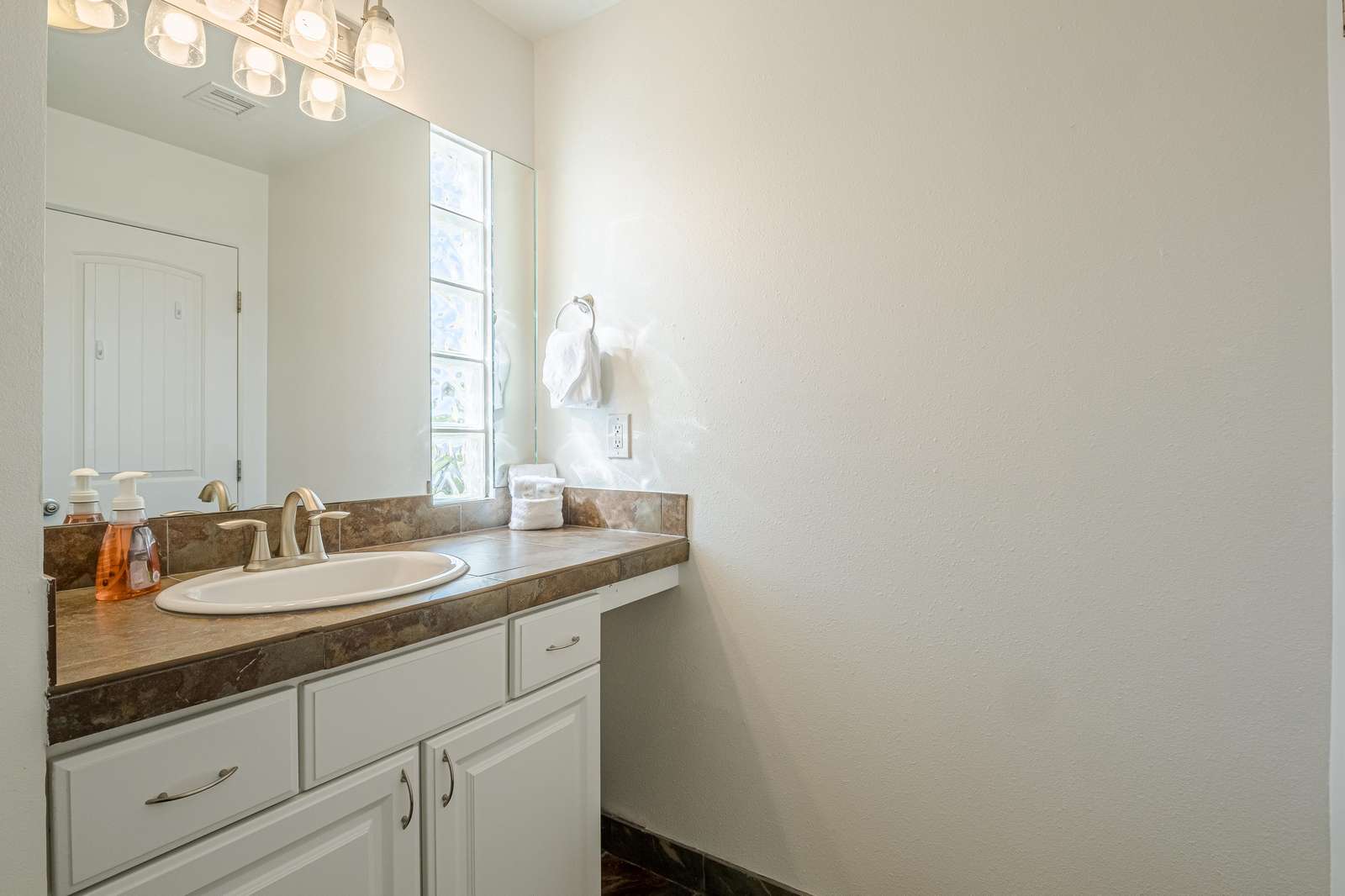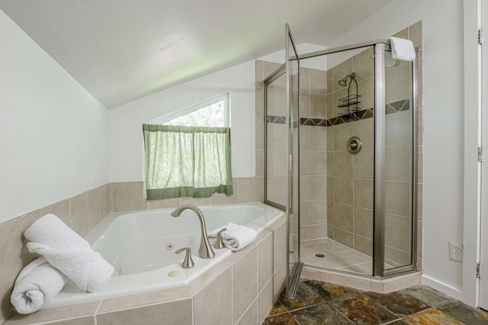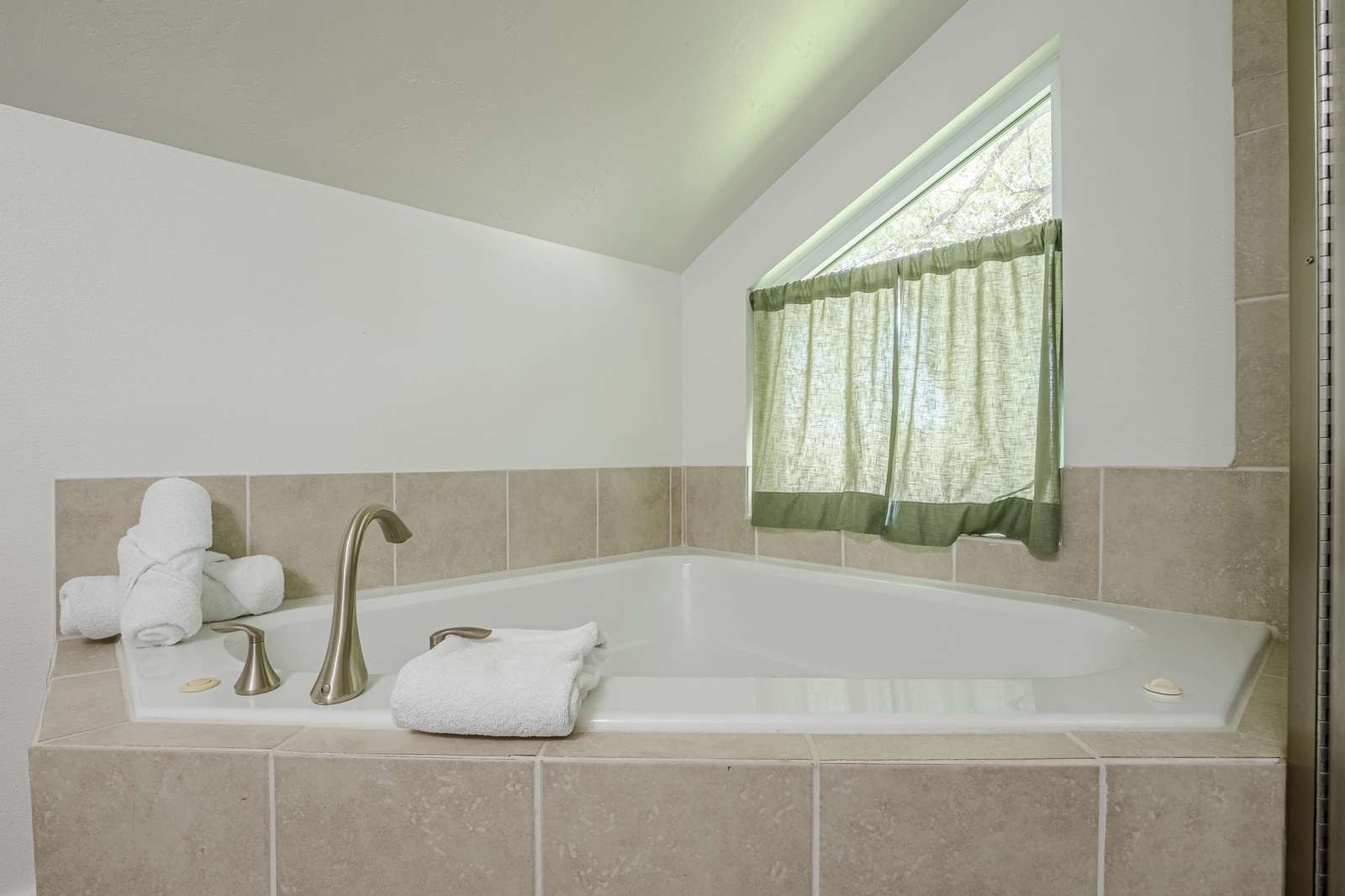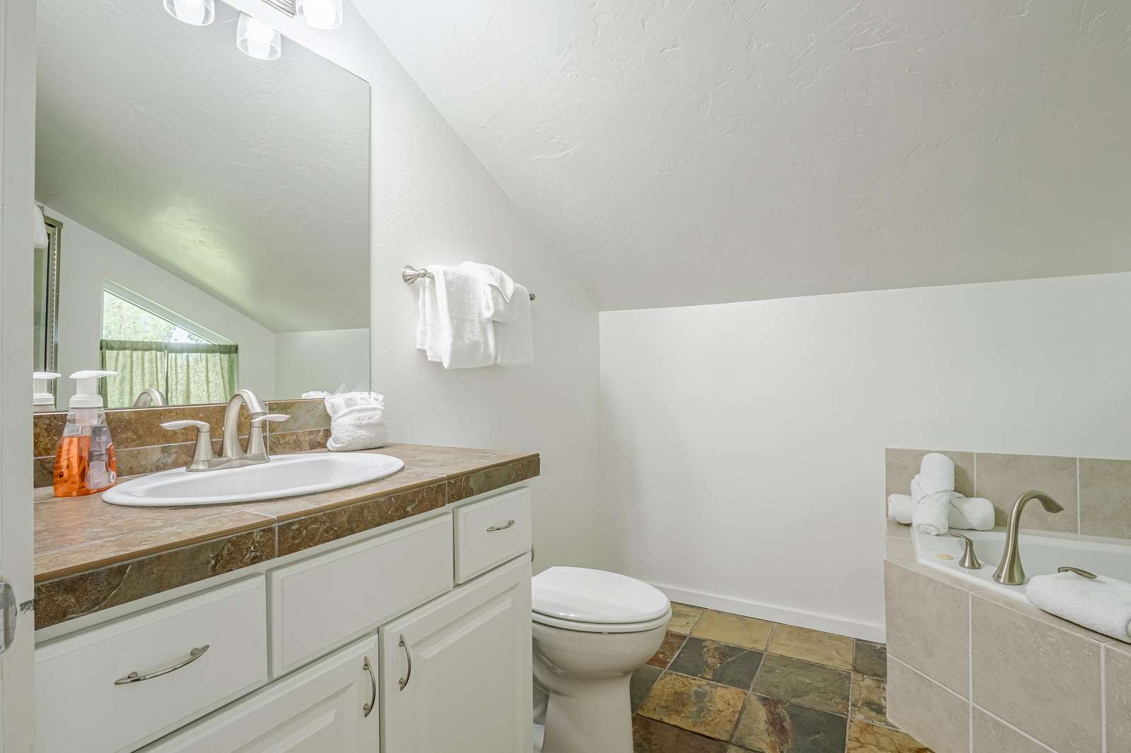 + Upstairs Bathroom: Enjoy a sink, walk-in shower, and large jetted tub.