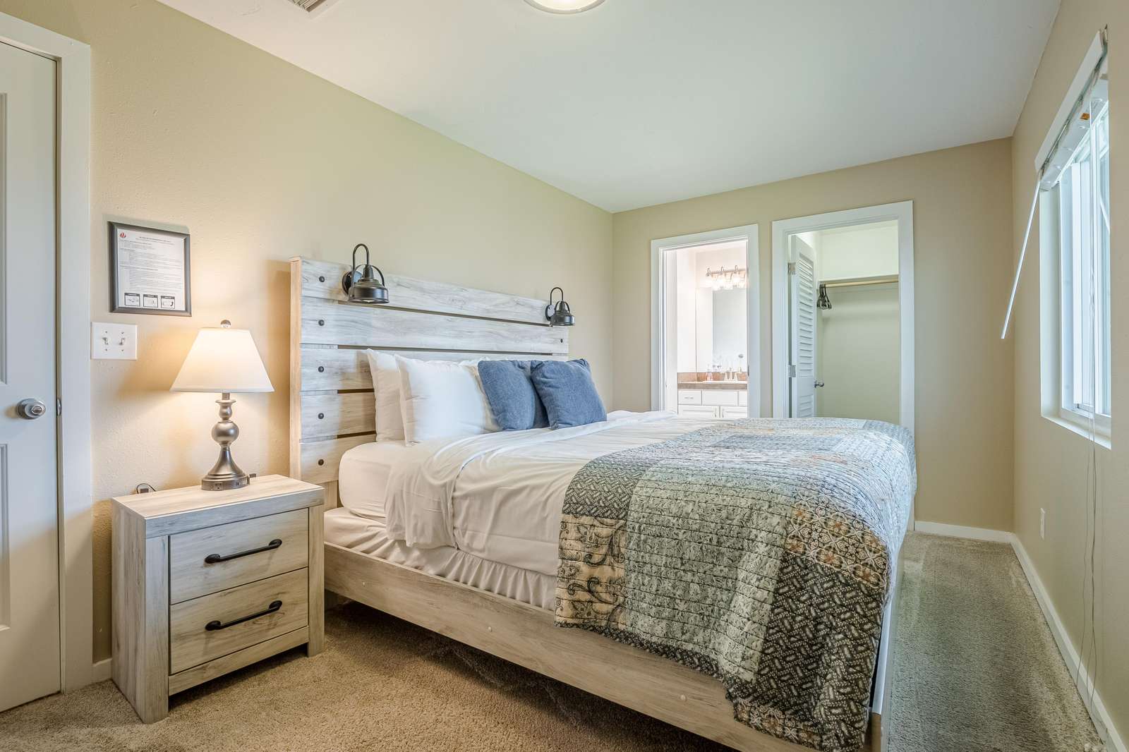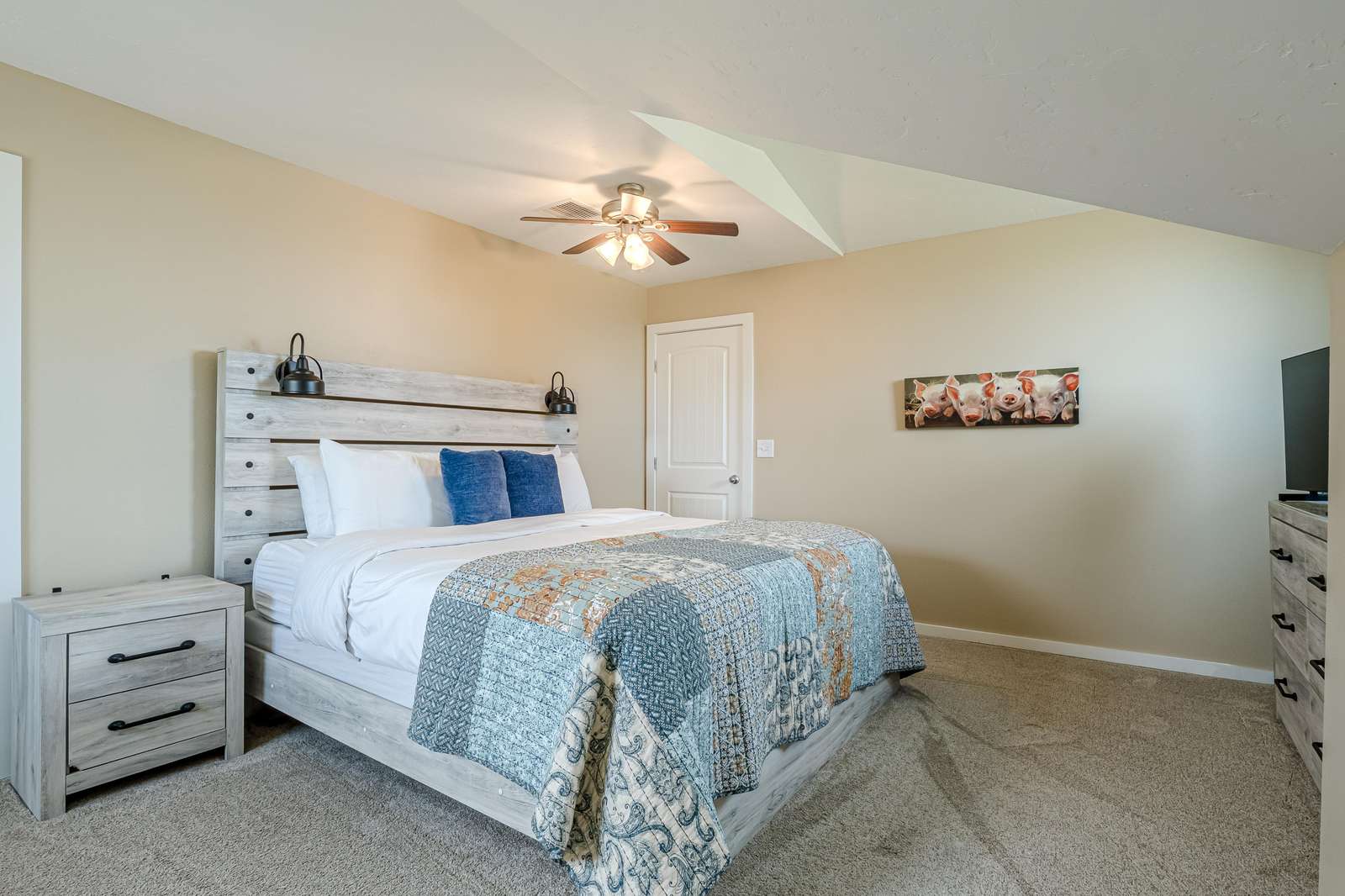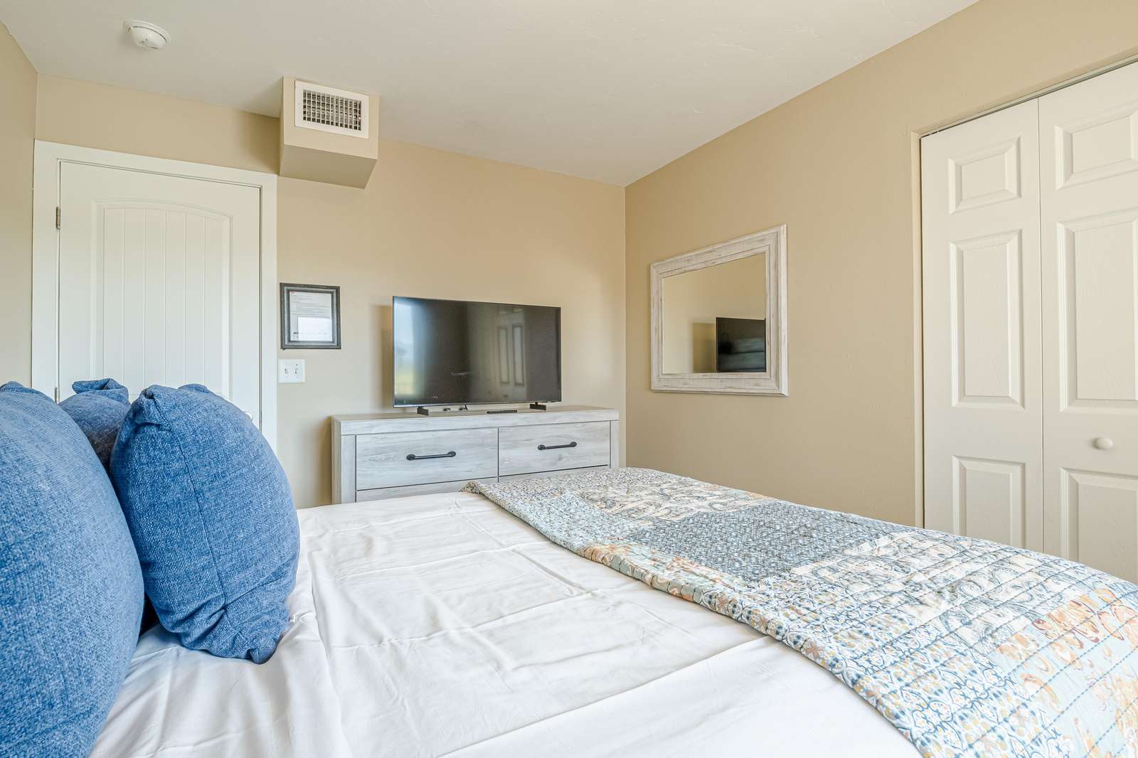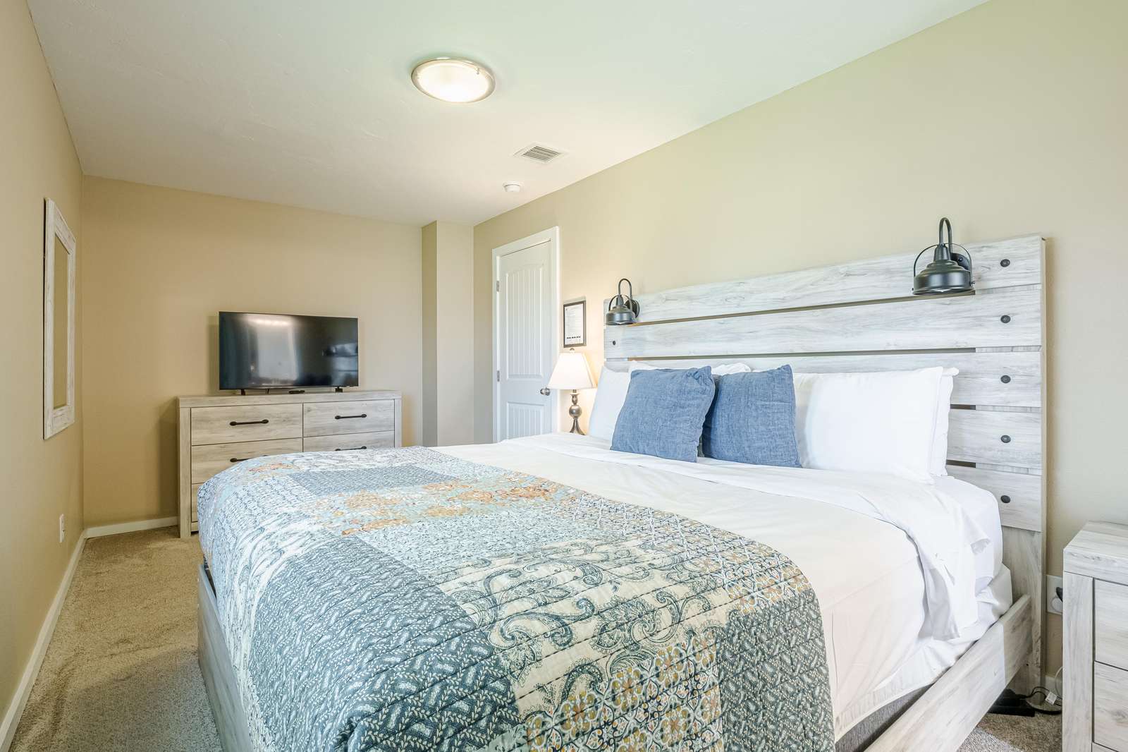 + Master Bedroom (Main Level): Relax in a king-size bed and enjoy the HD Smart TV.