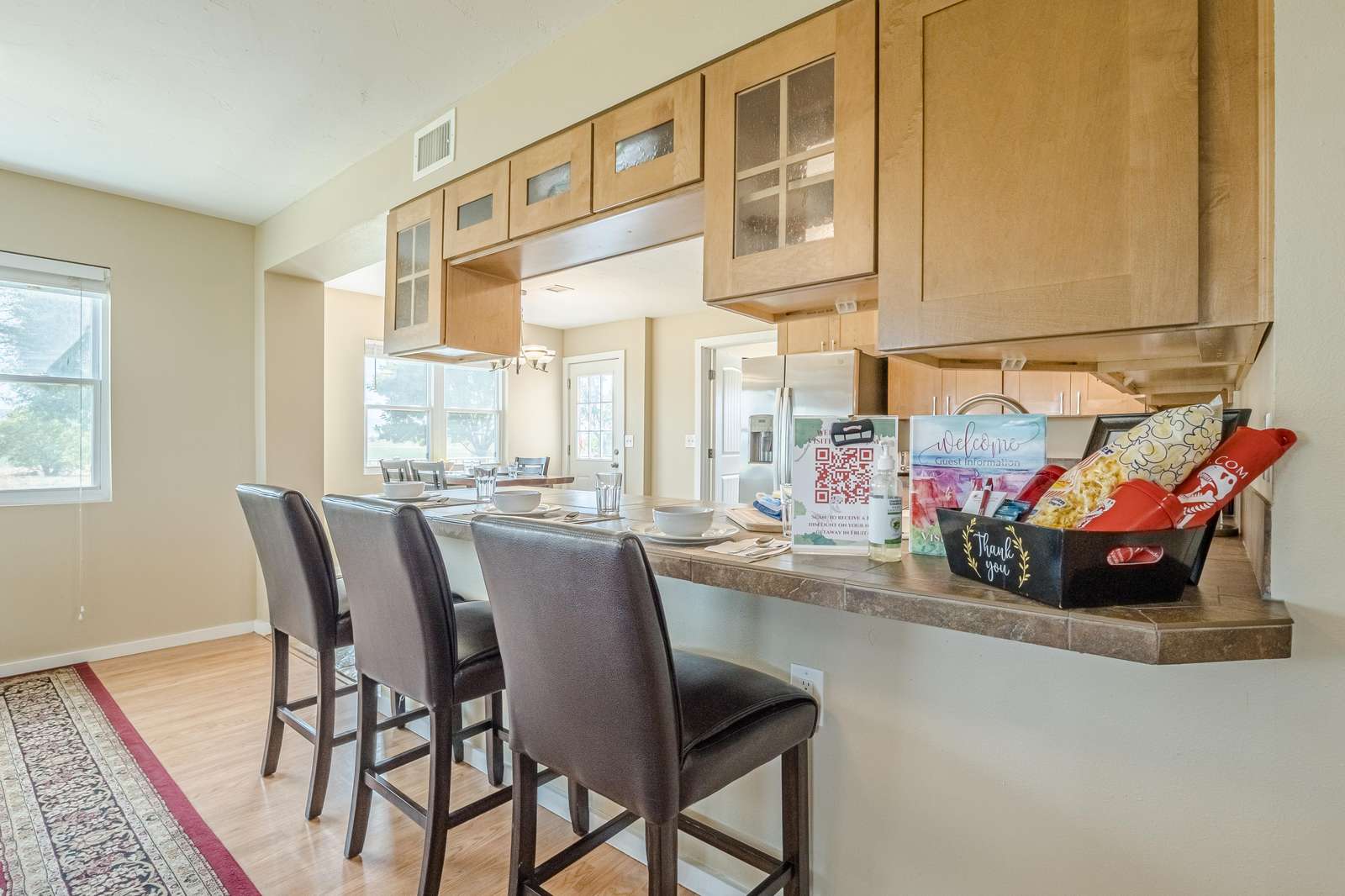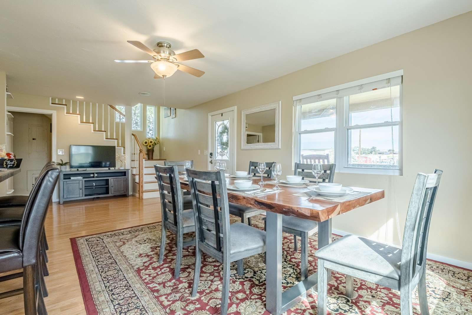 + Ample Dining Space: Seats up to 6 at the large dining table, plus 4 in the breakfast nook and 3 at the lunch counter.