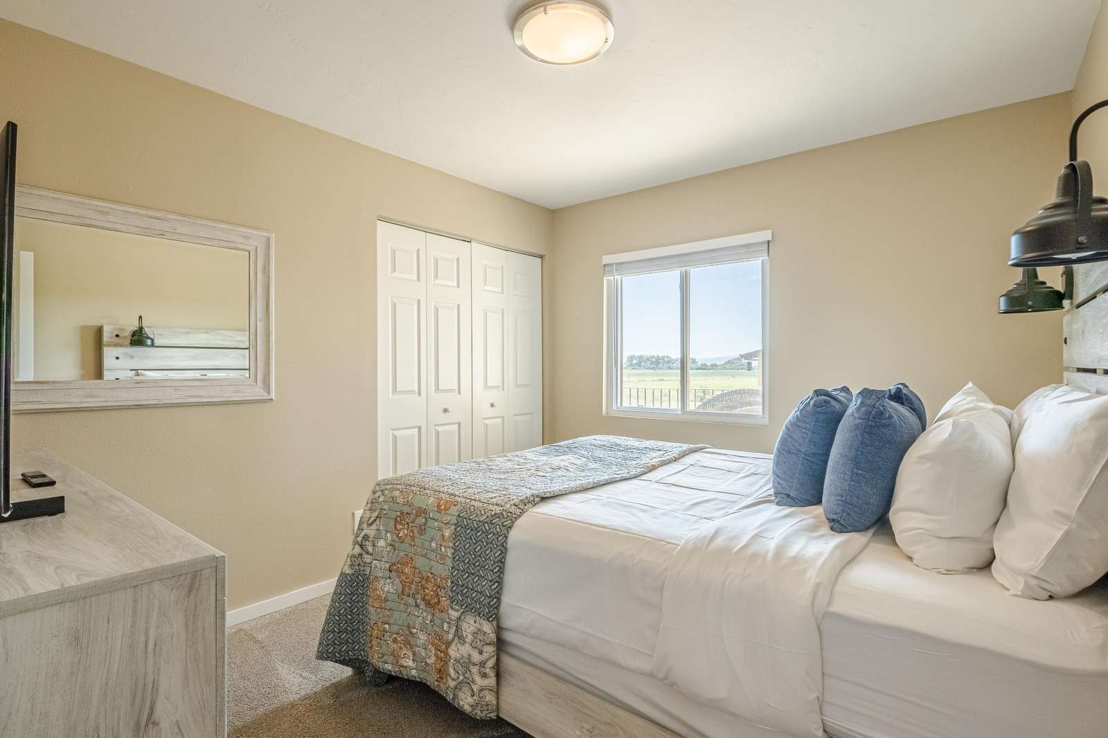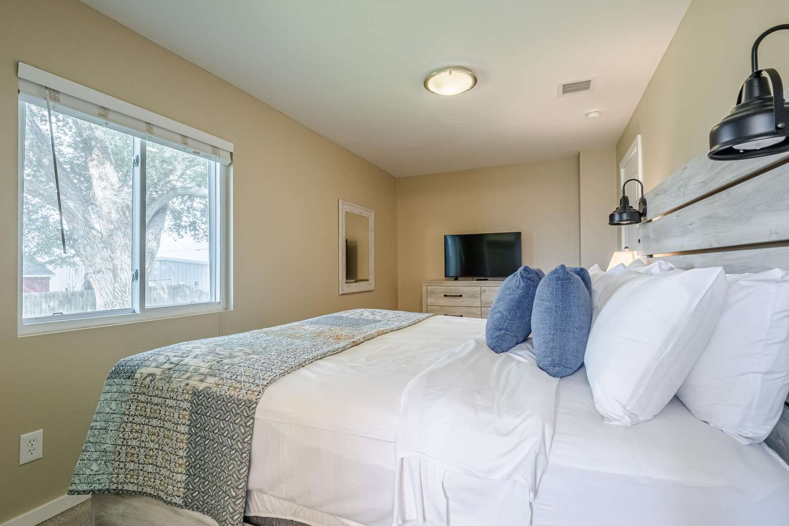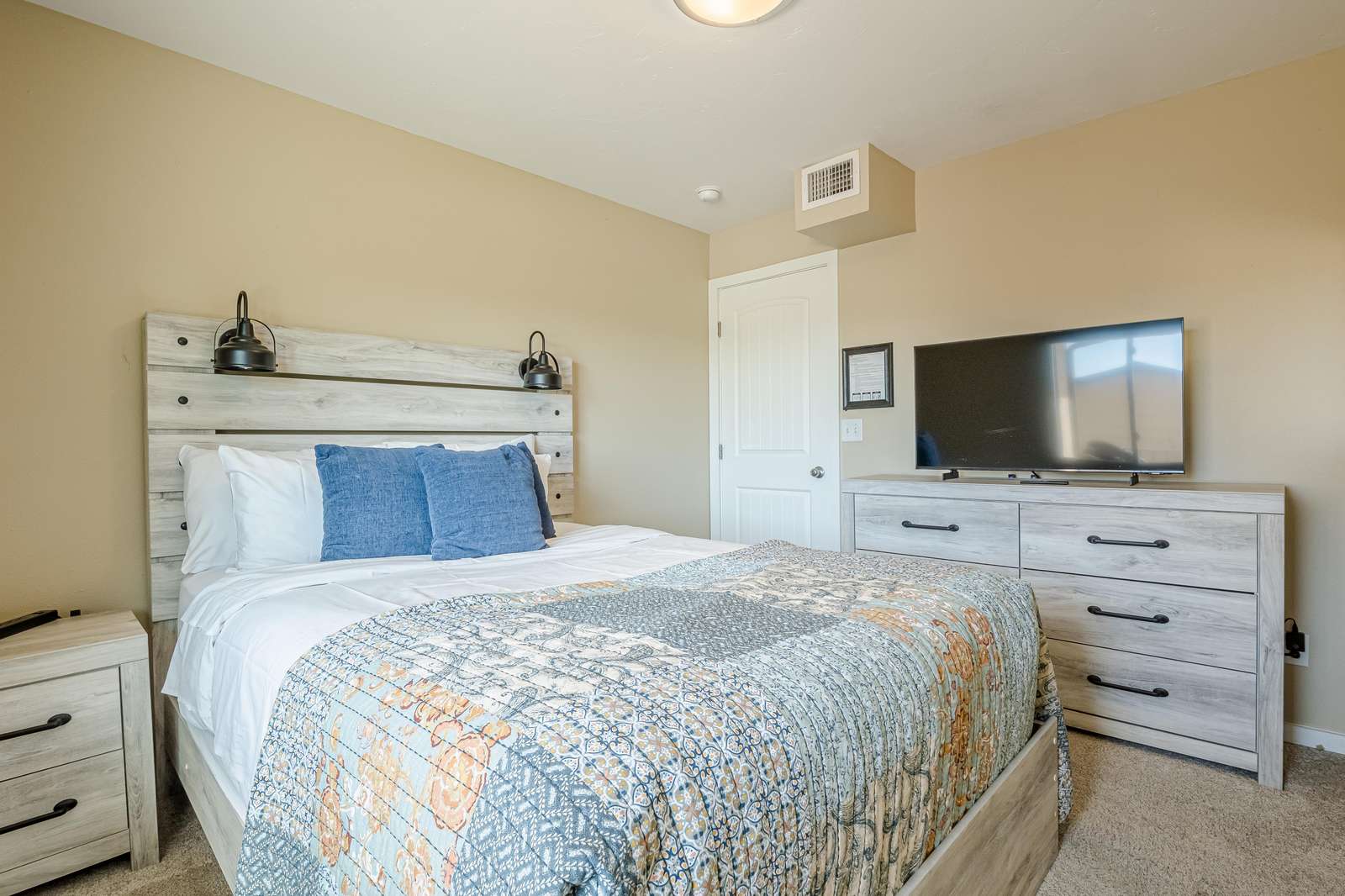 + 2nd Bedroom (Main Level): Cozy up in a queen-size bed with an HD Smart TV.