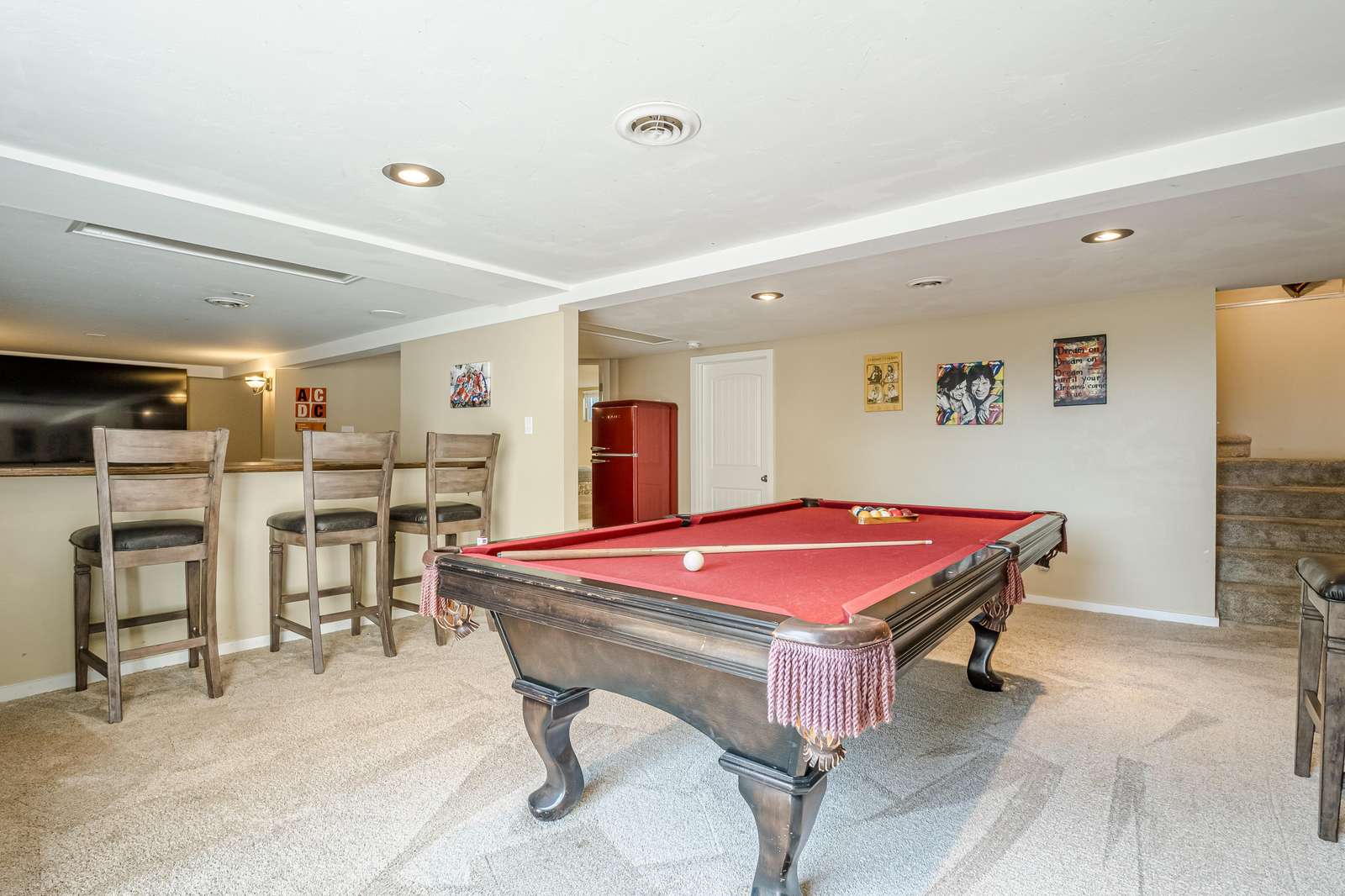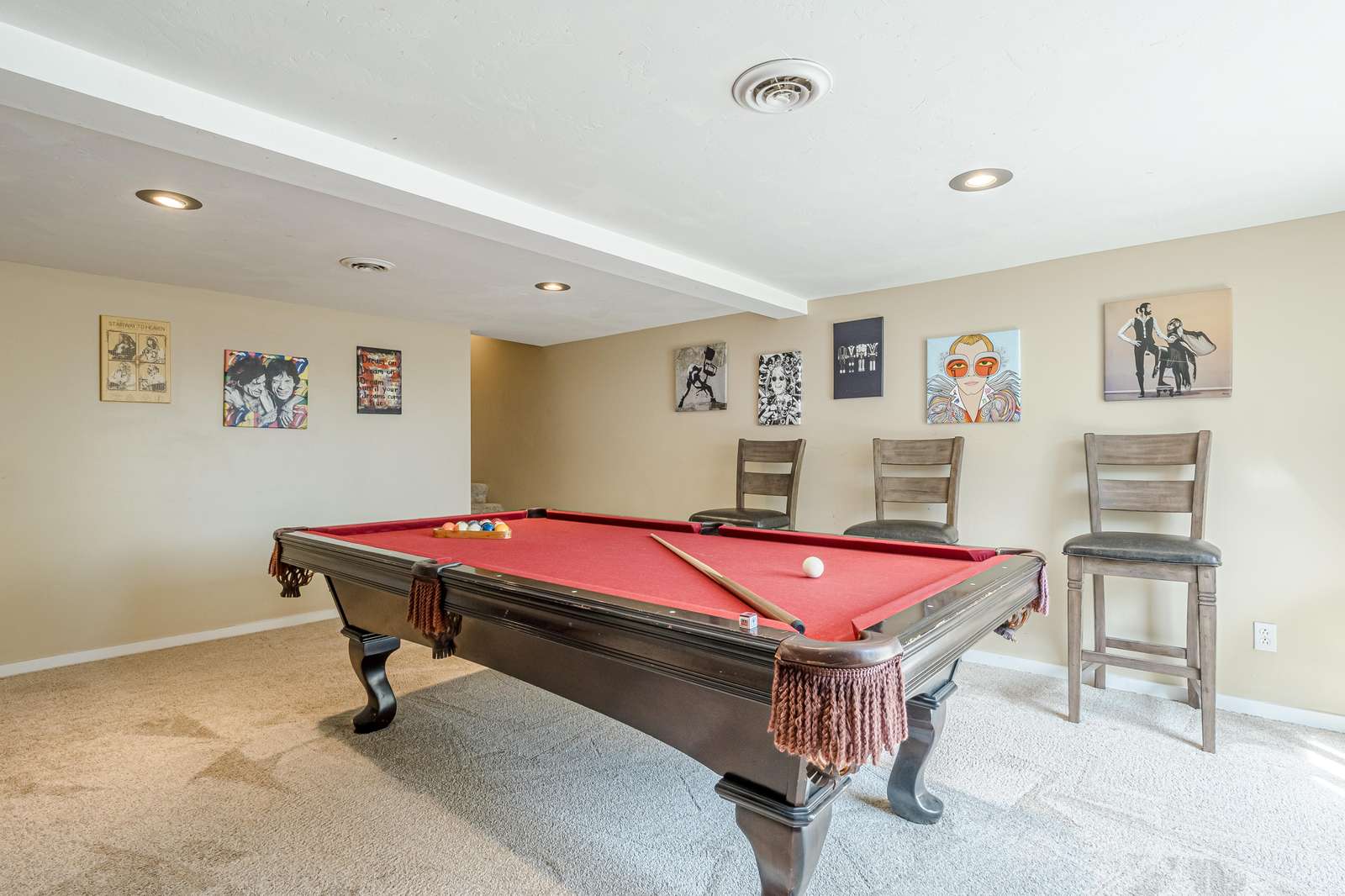 + Full-Sized Pool Table: Unwind and have fun in the downstairs entertainment area.