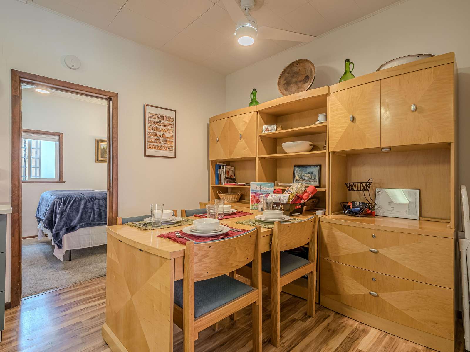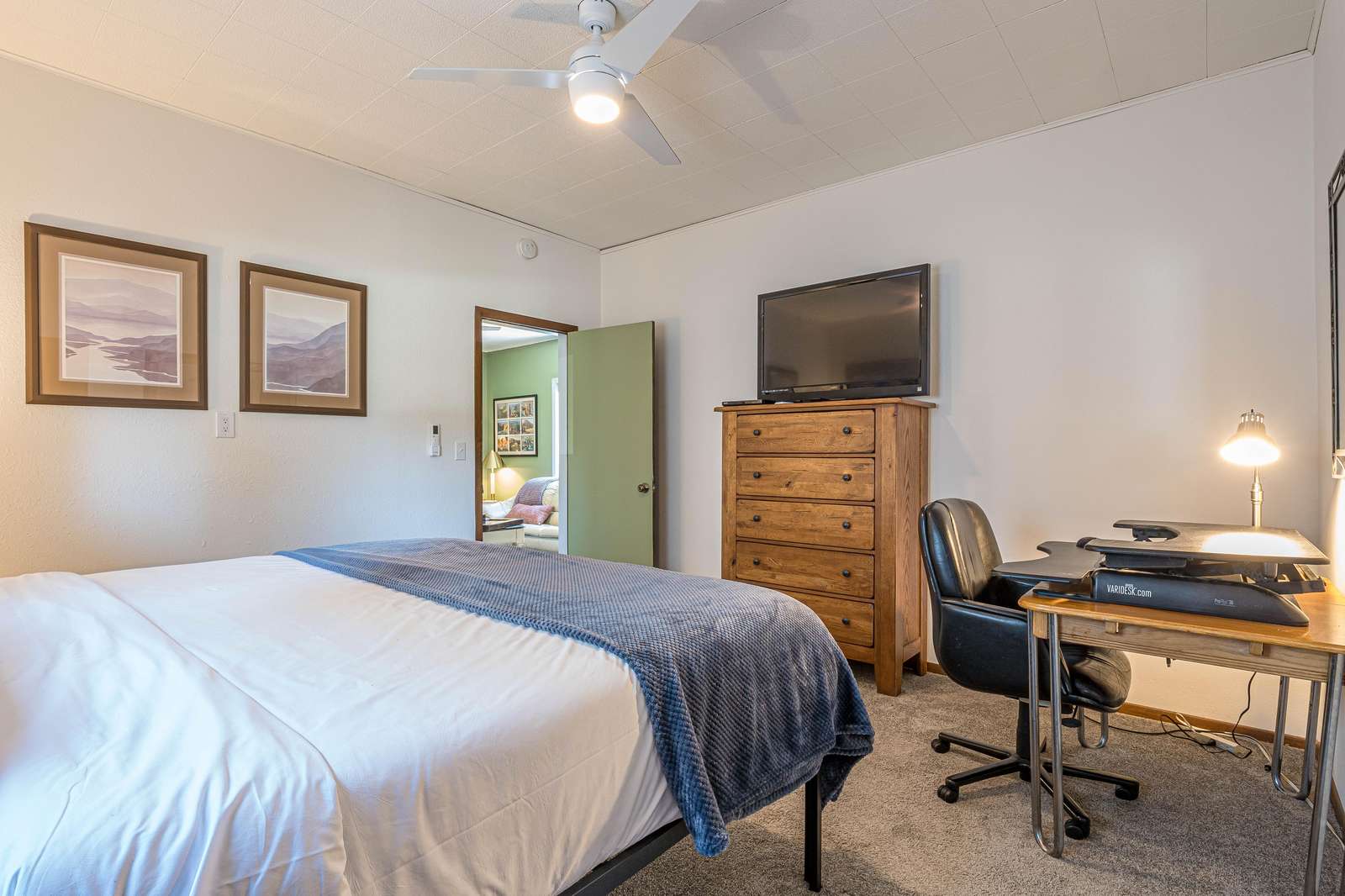 + The 1st bedroom has a King bed, TV, dedicated workspace, and closet storage.
