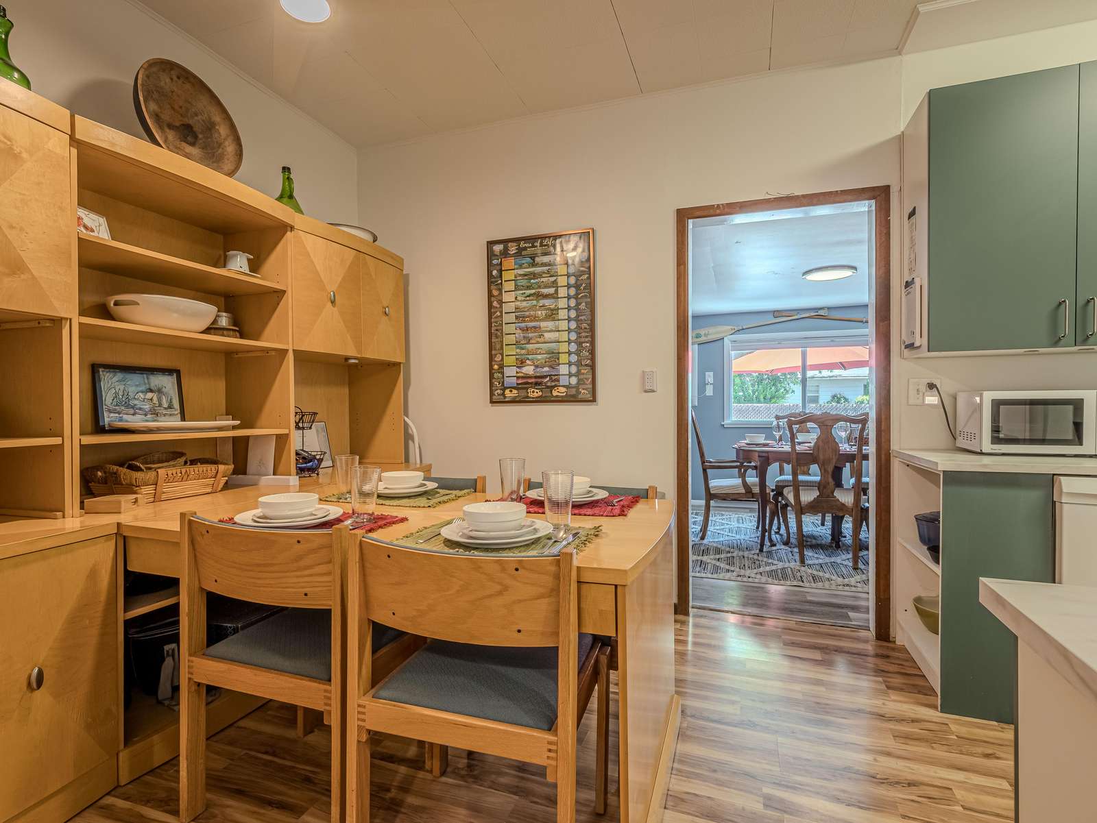 + Dining Excellence: Gather around the large dining table seating six comfortably, with additional seating for four in the kitchen.