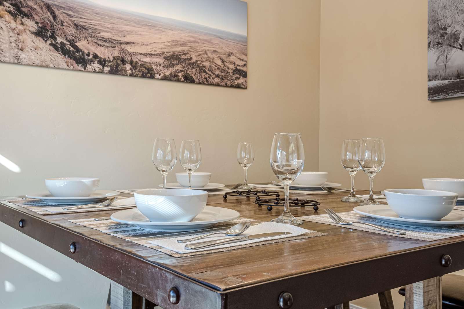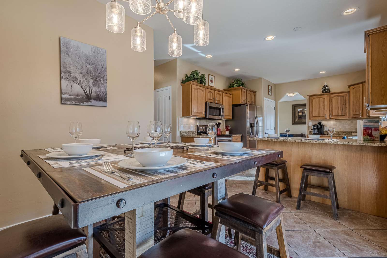 + Family Dining: Seat the whole family comfortably at our large dining table, with additional seating at the lunch counter.