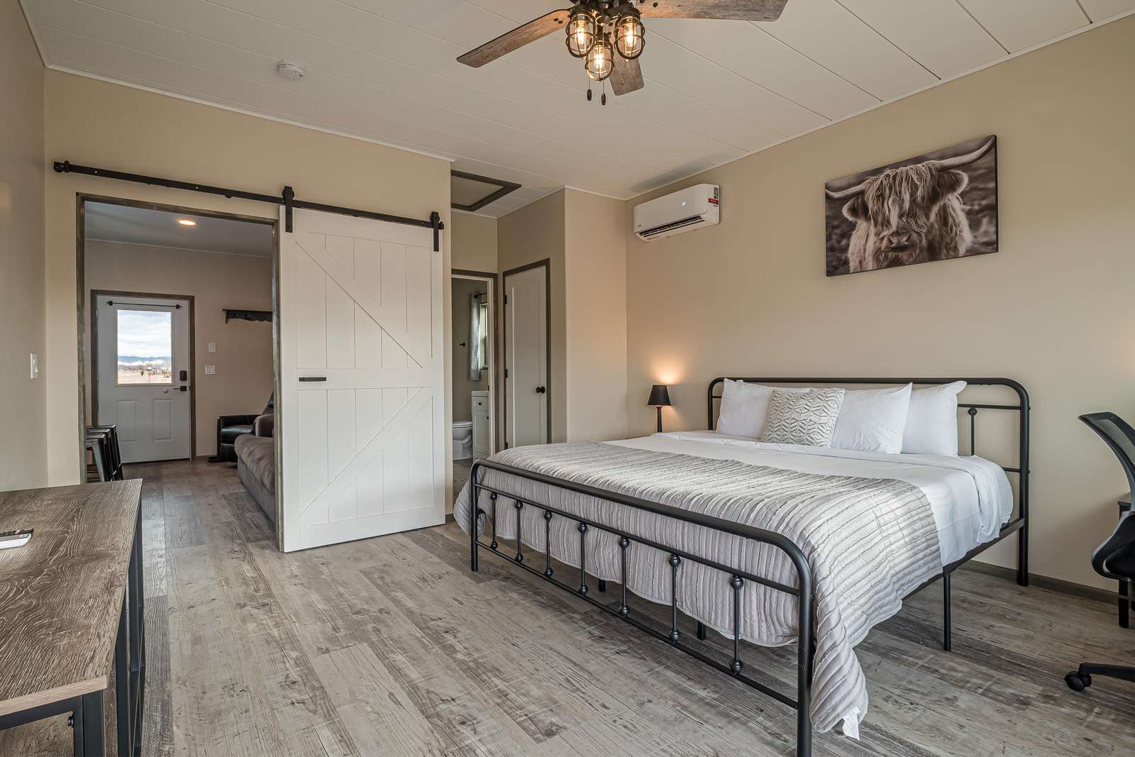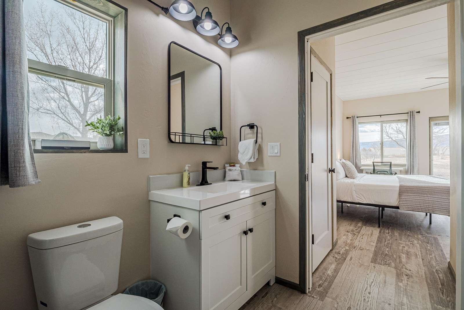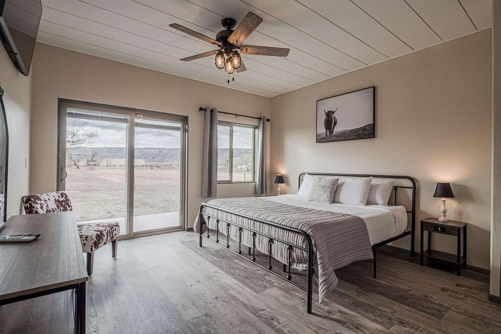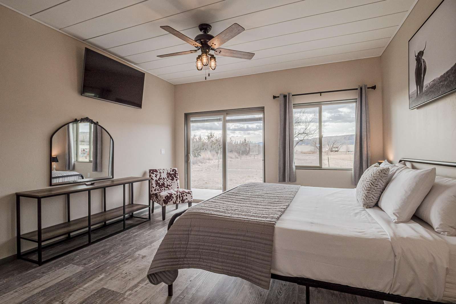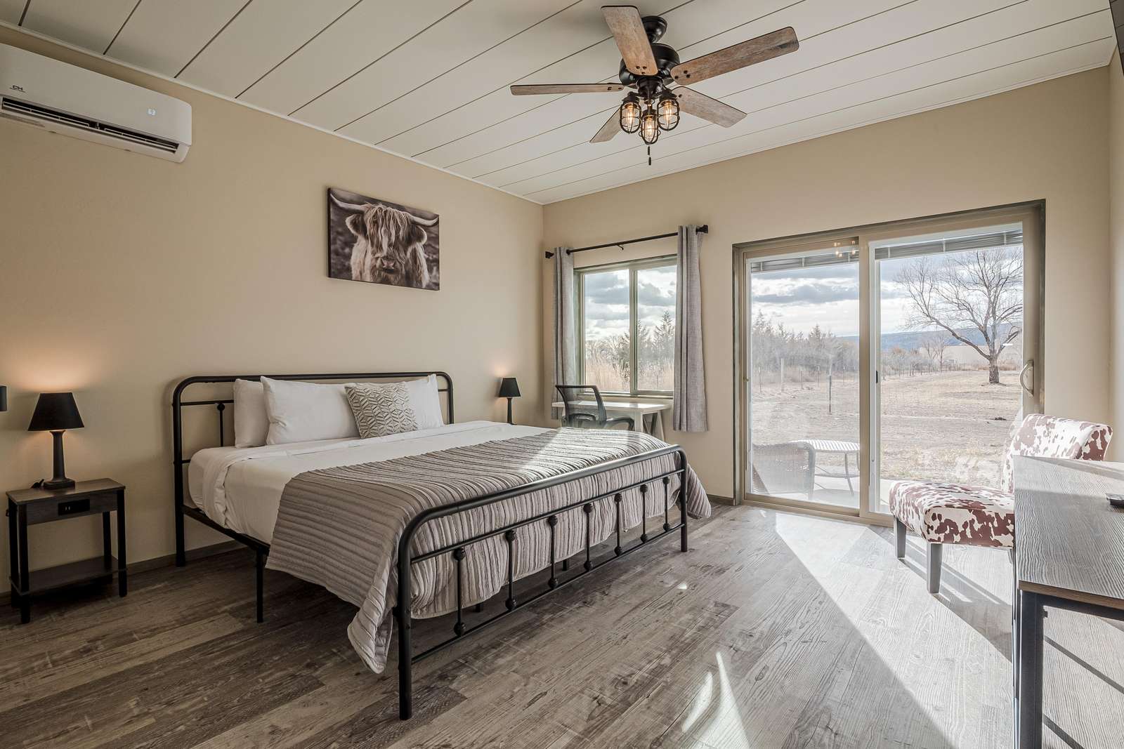 Experience modern comfort at Little Tumbleweed Inn! This pet-friendly getaway boasts dual washer/dryers, refrigerated cooling, king bedrooms with ensuite baths, a BBQ patio, and fast Wi-Fi. Conveniently located near trails, dining, and attractions.