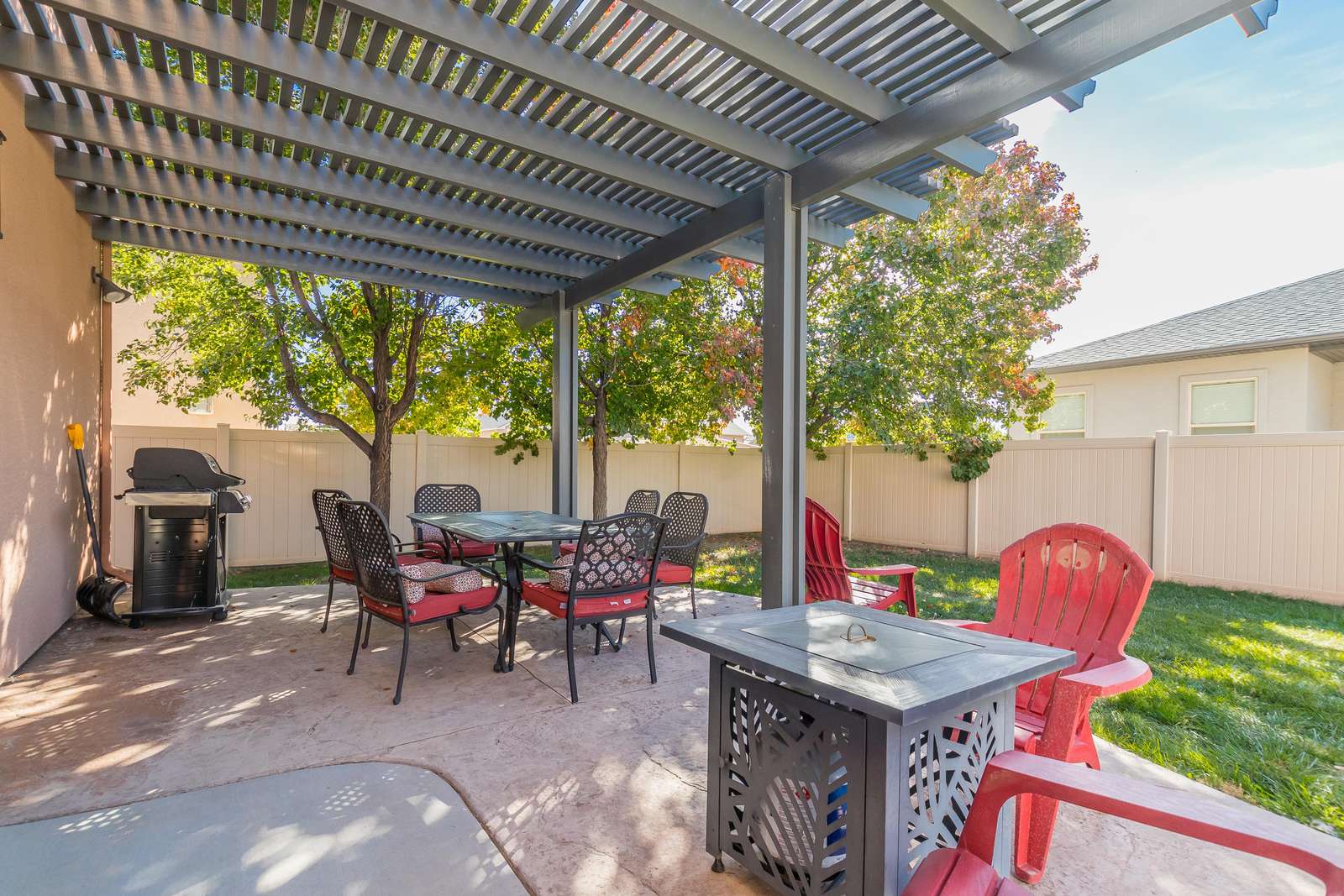 + Tons of Dining and Seating! There are 3 areas to dine and gather—from the formal 8-seat dining room, the 4-seat breakfast area, or the exterior dining table for 6. The backyard is completely fenced, has a large BBQ grill and propane fire pit—all under the newly added pergola. Create the perfect ambiance for enjoying evenings like a local.